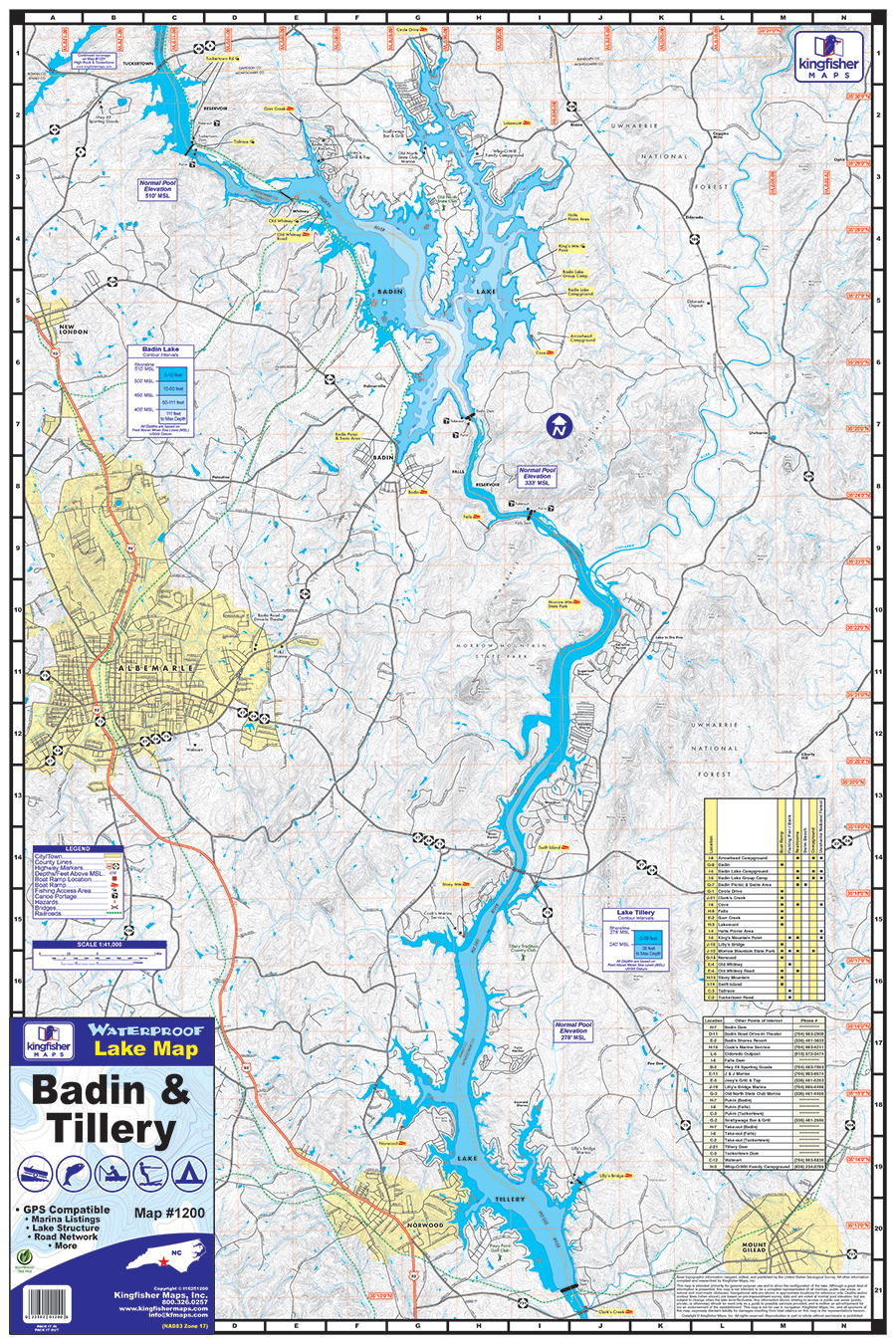 Badin & Tillery Lakes Waterproof Map #1200