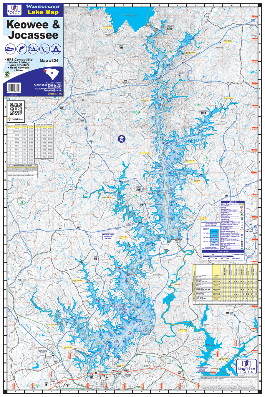 Kingfisher Maps Waterproof Map Lakes Keowee & Jocassee: