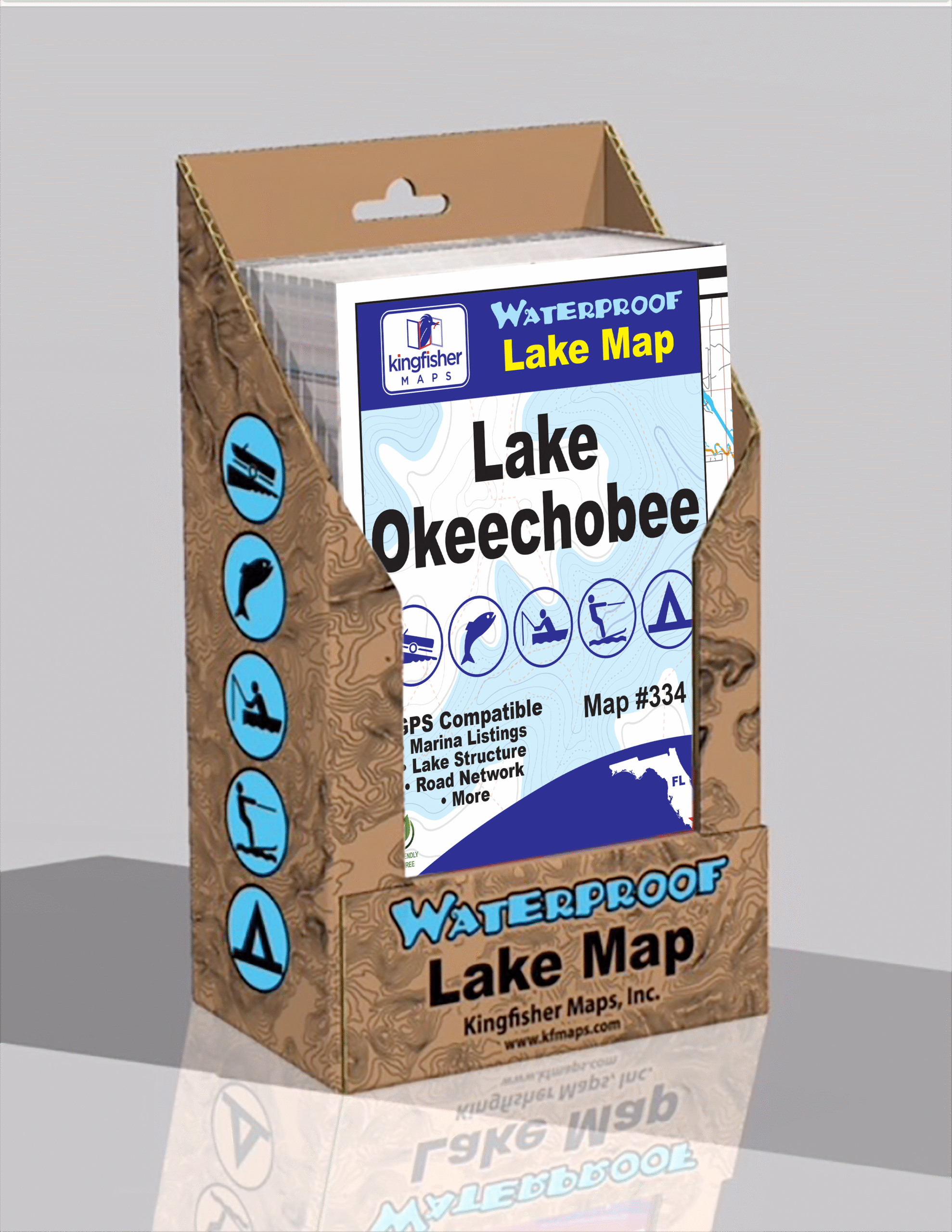 Includes – 24 Lake Okeechobee Waterproof Maps in either a Display Box or Bagged Individually.